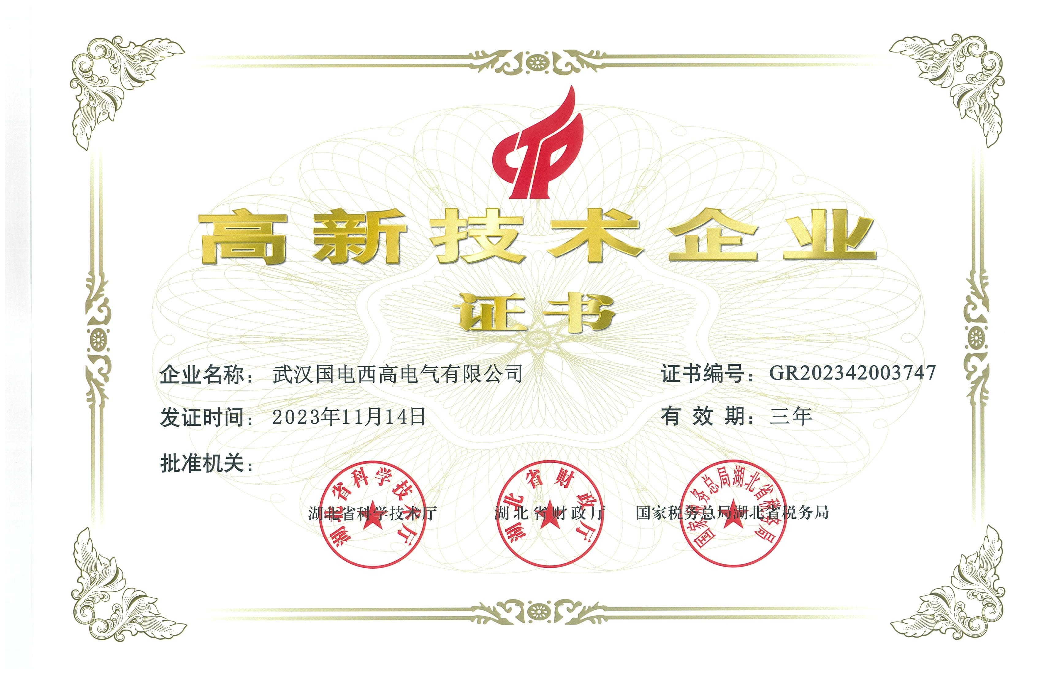 高新技術企業證書