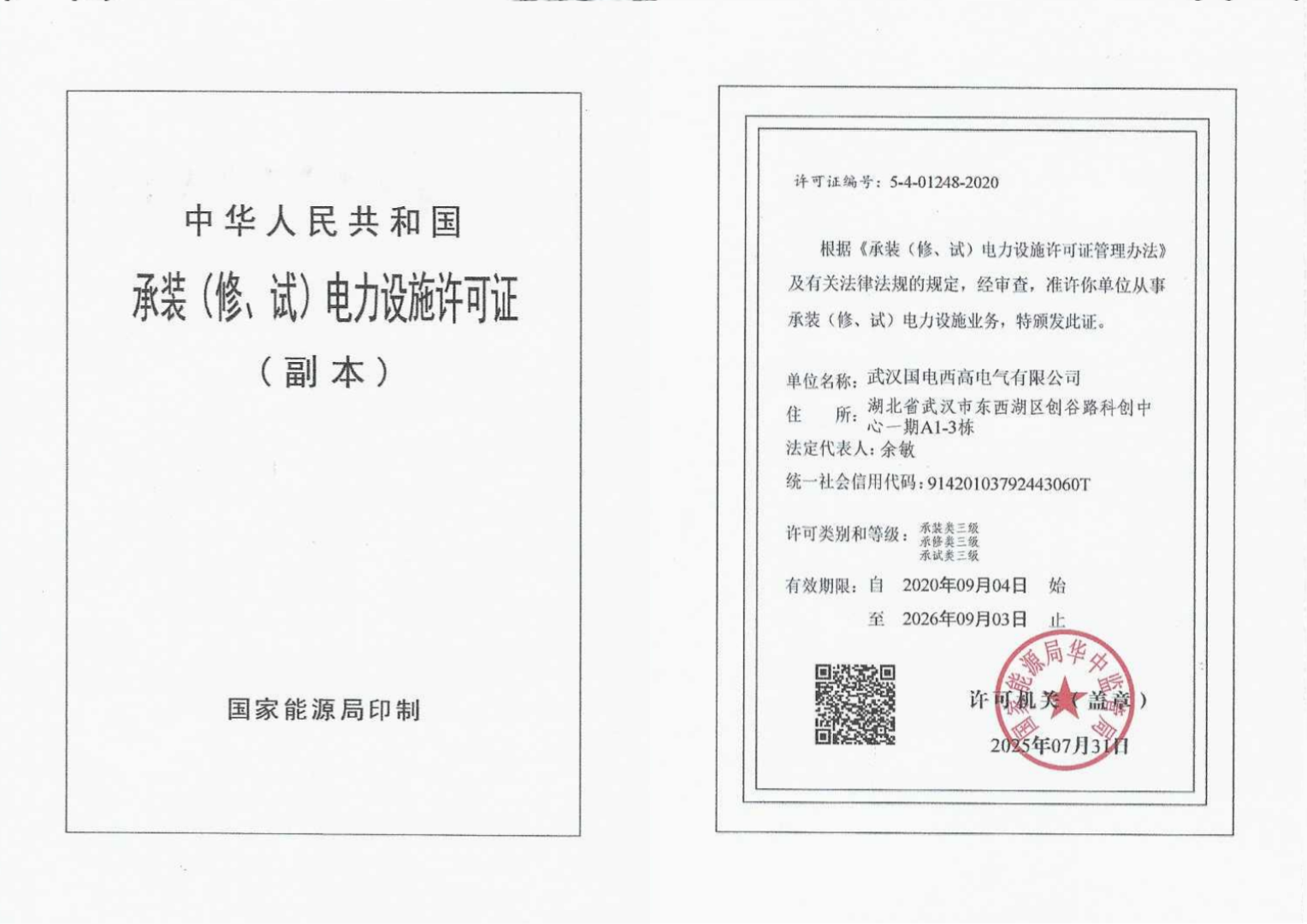• 承裝(修、試)電力設施許可證:5-4-01248-2020