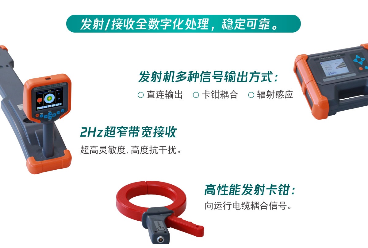 9,高性能發(fā)射卡鉗:向運(yùn)行電纜耦合信號。
