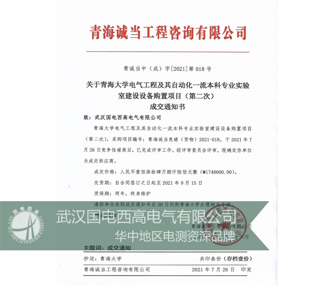 繼成功交付清華大學(xué)物理系、核研院、華北電力大學(xué)北京院校、西安交通大學(xué)、天津工業(yè)大學(xué)、海軍工程大學(xué)等高壓試驗室項目后,國電西高再次成功中標(biāo)青海大學(xué)電氣工程及其自動化一流本科專業(yè)實驗室建設(shè)設(shè)備購置項目(第二次)。