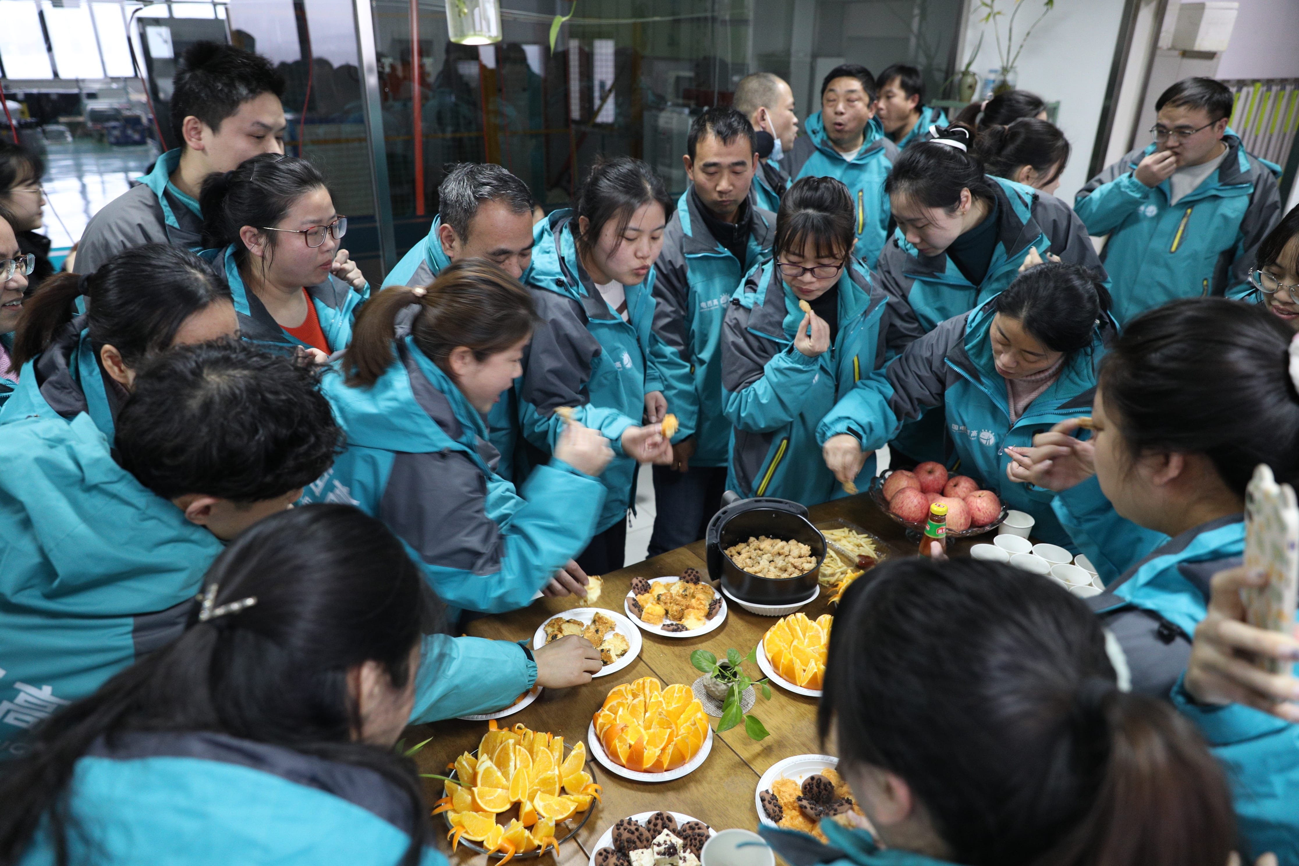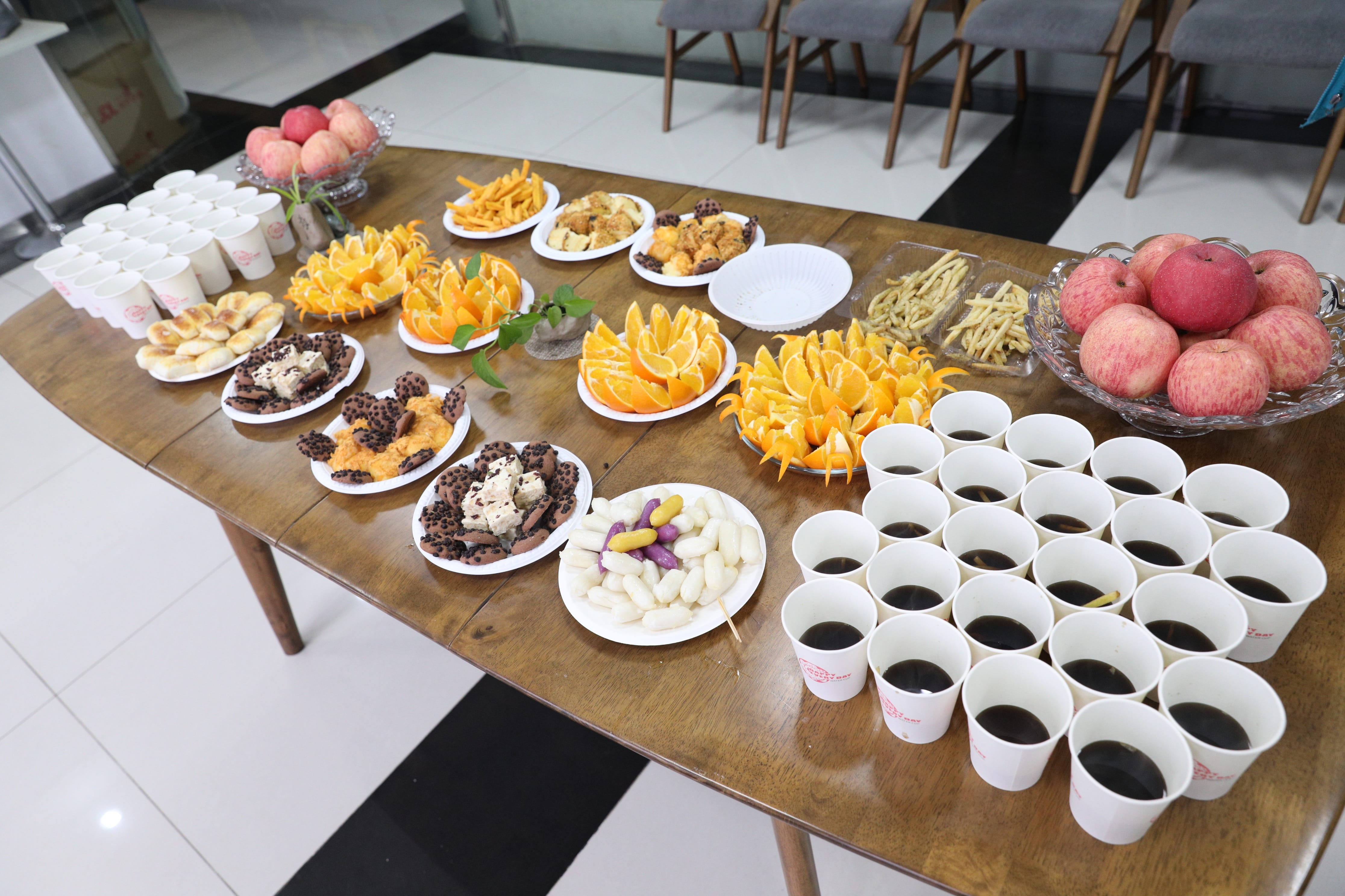 領(lǐng)完福利后,大家移步到餐廳一起享用雙旦特殊下午茶時間。在美味可口的水果、點(diǎn)心前,大家停滯不前,享受美食。