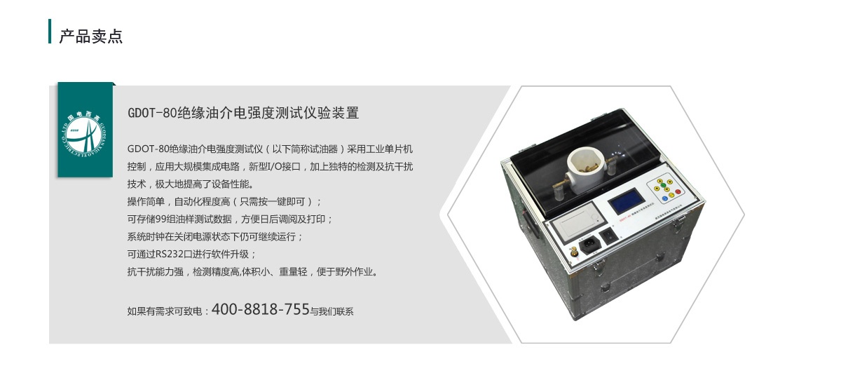 我公司生產的GDOT系列絕緣油介電強度測試儀(以下簡稱試油機)采用工業單片機控制,應用大規模集成電路,新型I/O接口,加上獨特的檢測及抗干擾技術,極大地提高了設備性能。
