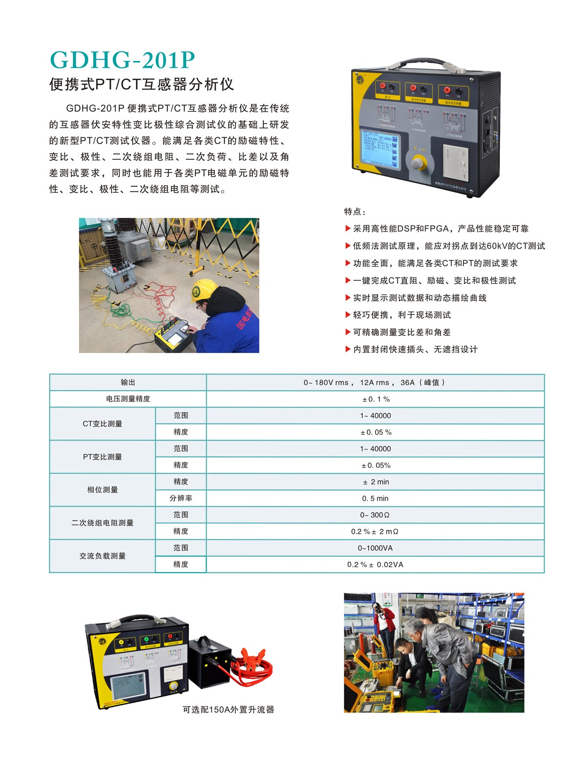 GDHG-201P/301P便攜式PT-CT互感器分析儀是在傳統基于調壓器、升壓器、升流器的互感器伏安特性變比極性綜合測試儀基礎上,廣泛聽取用戶意見、經過大量的市場調研、深入進行理論研究之后研發的新一代革新型CT、PT測試儀器。裝置采用高性能DSP和FPGA、先進的制造工藝,保證了產品性能穩定可靠、功能完備、自動化程度高、測試效率高、在國內處于領先水平,是電力行業用于互感器的專業測試儀器。