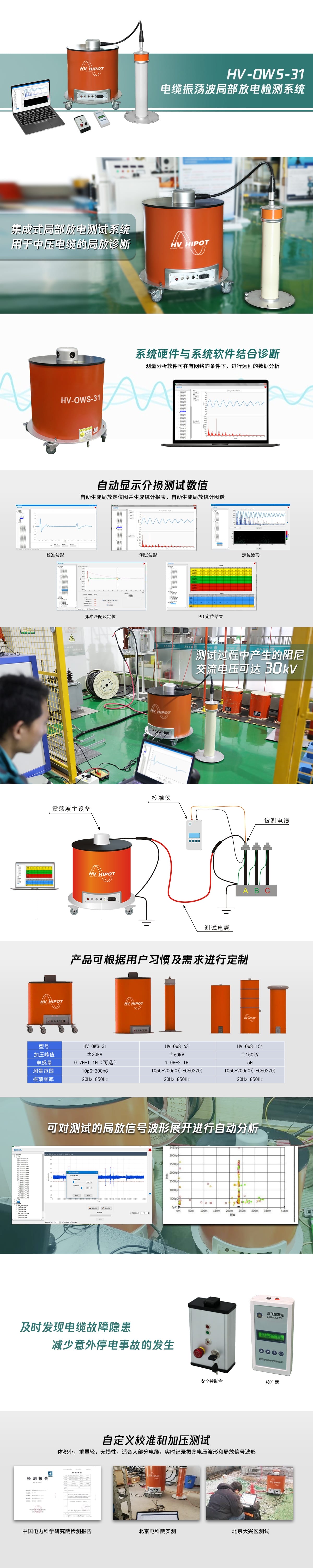 HV-OWS-63系列是集成式局部放電測試系統,主要用于中壓電纜的局放診斷。統測試頻率為50HZ 到幾百 HZ 阻尼交流電壓,系統在測試過程中產生的阻尼交流電壓可達 60kV,并結合先進的系統硬件與系統軟件進行診斷。