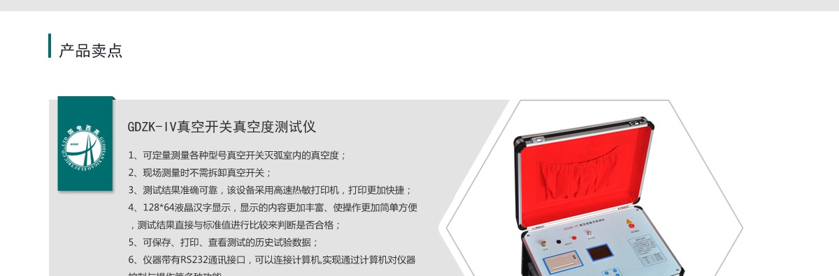本公司推出的GDZK-IV型真空度測試儀是經現場多次試驗后不斷完善的升級換代產品。該產品結構緊湊,機型輕便小巧,測試時間更短,測量可靠性、穩定性、精度更高,功能更加完善。