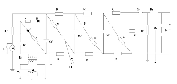 沖擊電壓發生器接線原理圖如下圖: