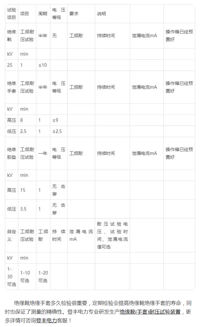 絕緣靴絕緣手套多久檢驗(yàn),接下來(lái)國(guó)電西高給出一個(gè)詳細(xì)的表格: