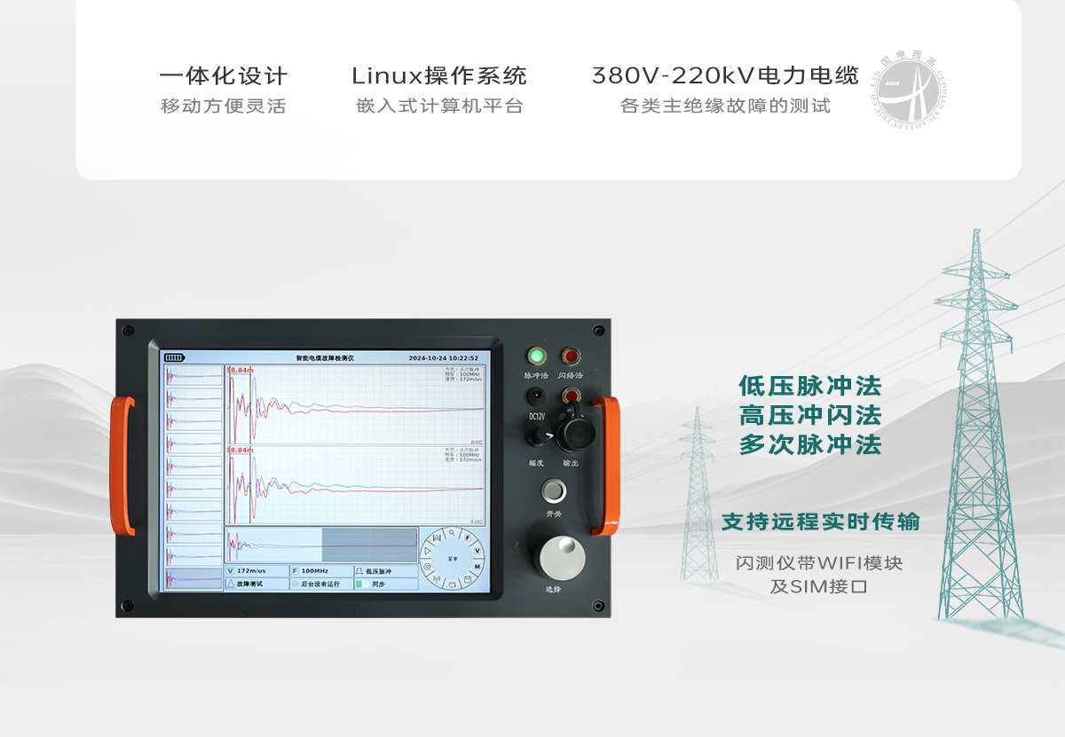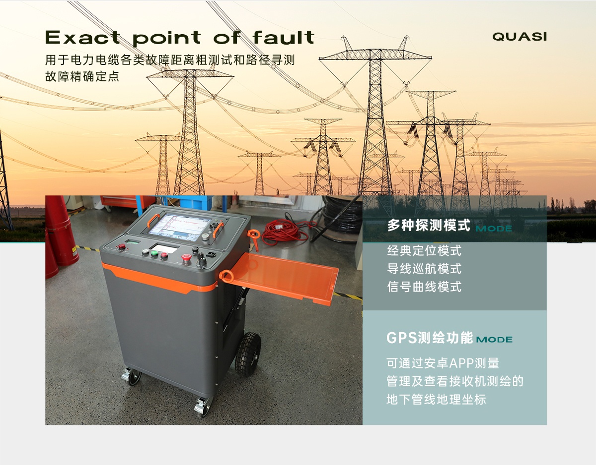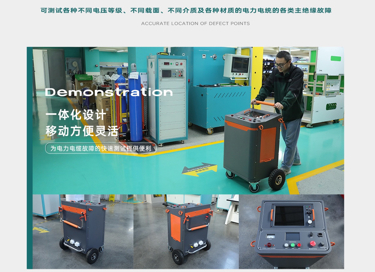可測試各種不同電壓等級、不同截面、不同介質及各種材質的電力電纜的各類主絕緣故障,包括:開路、短路、低阻、高阻泄漏、高阻閃絡性故障。