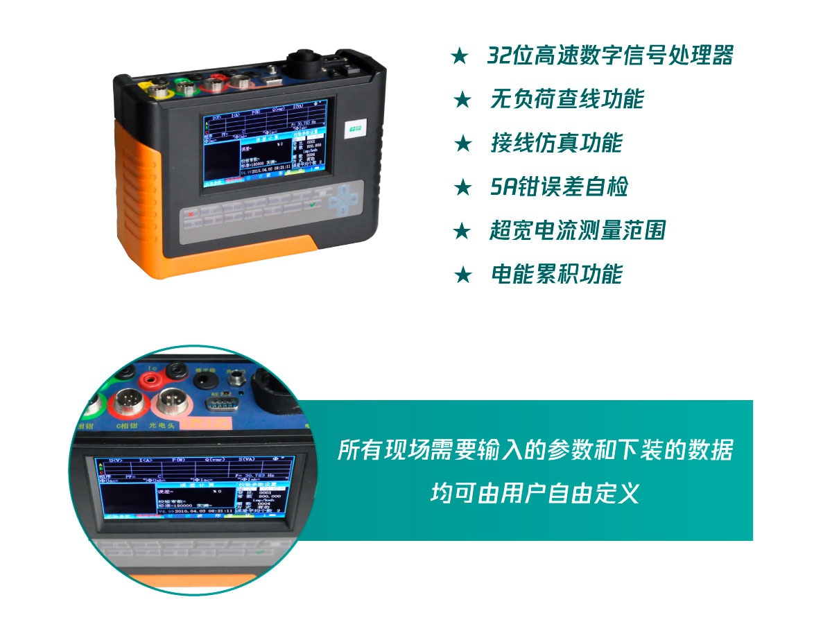 • 所有現場需要輸入的參數和下裝的數據均可由用戶自由定義。可下裝