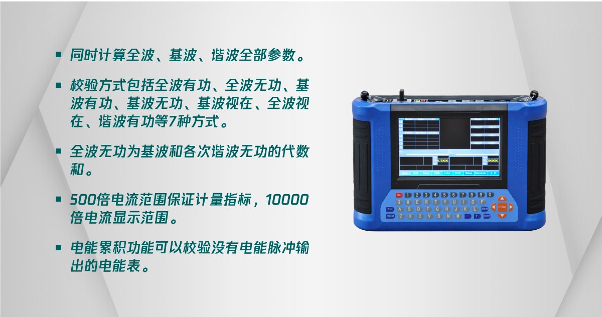 · 校驗(yàn)方式包括全波有功、全波無功、基波有功、基波無功、基波視在、全波視在、諧波有功等7種方式;