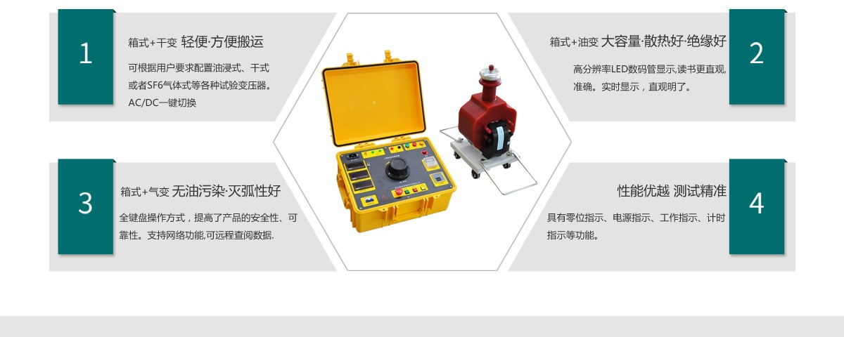 可根據用戶要求配置油浸式、干式或者SF6氣體式等各種試驗變壓器。