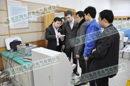第二天, 客戶對(duì)我公司的各種常規(guī)電力監(jiān)測(cè)試驗(yàn)進(jìn)行了現(xiàn)場(chǎng)實(shí)地考察,包括:超低頻,交流耐壓,直流耐壓,電纜故障,直流電阻,絕緣油測(cè)試,變比組別,真空度測(cè)試儀,回路電阻,高壓開(kāi)關(guān),繼電保保護(hù)測(cè)試,絕緣手套靴,氧化鋅避雷器等試驗(yàn),并對(duì)每種試驗(yàn)提出了很多專業(yè)問(wèn)題,我公司領(lǐng)導(dǎo)通過(guò)現(xiàn)場(chǎng)演算對(duì)其給予解答。通過(guò)與我公司工程師的溝通,俄羅斯客戶更是提出了希望將來(lái)能共同研發(fā)出領(lǐng)先國(guó)內(nèi)技術(shù)要求的產(chǎn)品,并以此為基礎(chǔ)大力開(kāi)拓俄中兩國(guó)的市場(chǎng)。