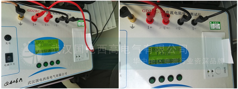 首先用GDZRC系列直流電阻快速測試儀做變壓器的直阻測試。按照要求將測試儀和變壓器接線連接,接著指導客戶用100mA高壓繞組和3A低壓繞組進行測試,測出三相不平衡度符合國家標準,和歷史數據參照對比也達到要求!