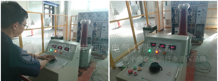 隨后,用其購買的GDYD-15/150工頻耐壓試驗裝置對現場的10kV開關做耐壓試驗。客戶按照標準升壓至42kV一分鐘無閃絡,試驗通過!