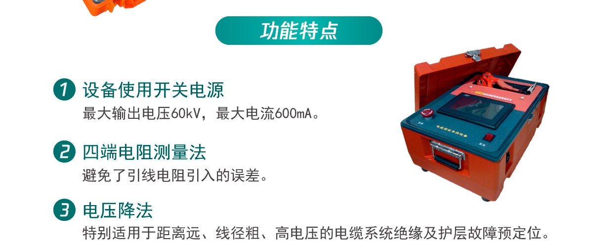 · 電壓降法特別適用于距離遠、線徑粗、高電壓的電纜系統絕緣及護層故障預定位;