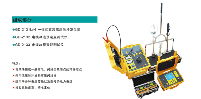 GD-2136系列電纜故障測試系統集成了測距、定點以及路徑探測等功能,能對電纜的高阻閃絡故障、高低阻性的接地、短路和電纜的斷線,接觸不良等故障進行測試,適用于測試各種不同型號、不同電壓等級的電力電纜及通信電纜。
