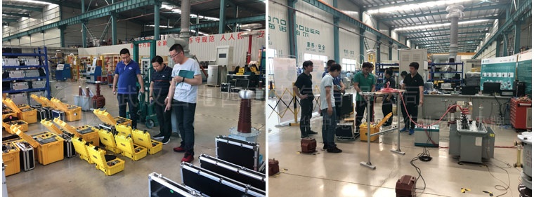考察過程中,客戶一行人對我們的研發中心、設備展區、生產車間、電力設備試驗區等都一一參觀了解。同時,在電力設備試驗區對具備模式演示條件的四級承試資質設備為客戶親自演示了相關試驗操作。