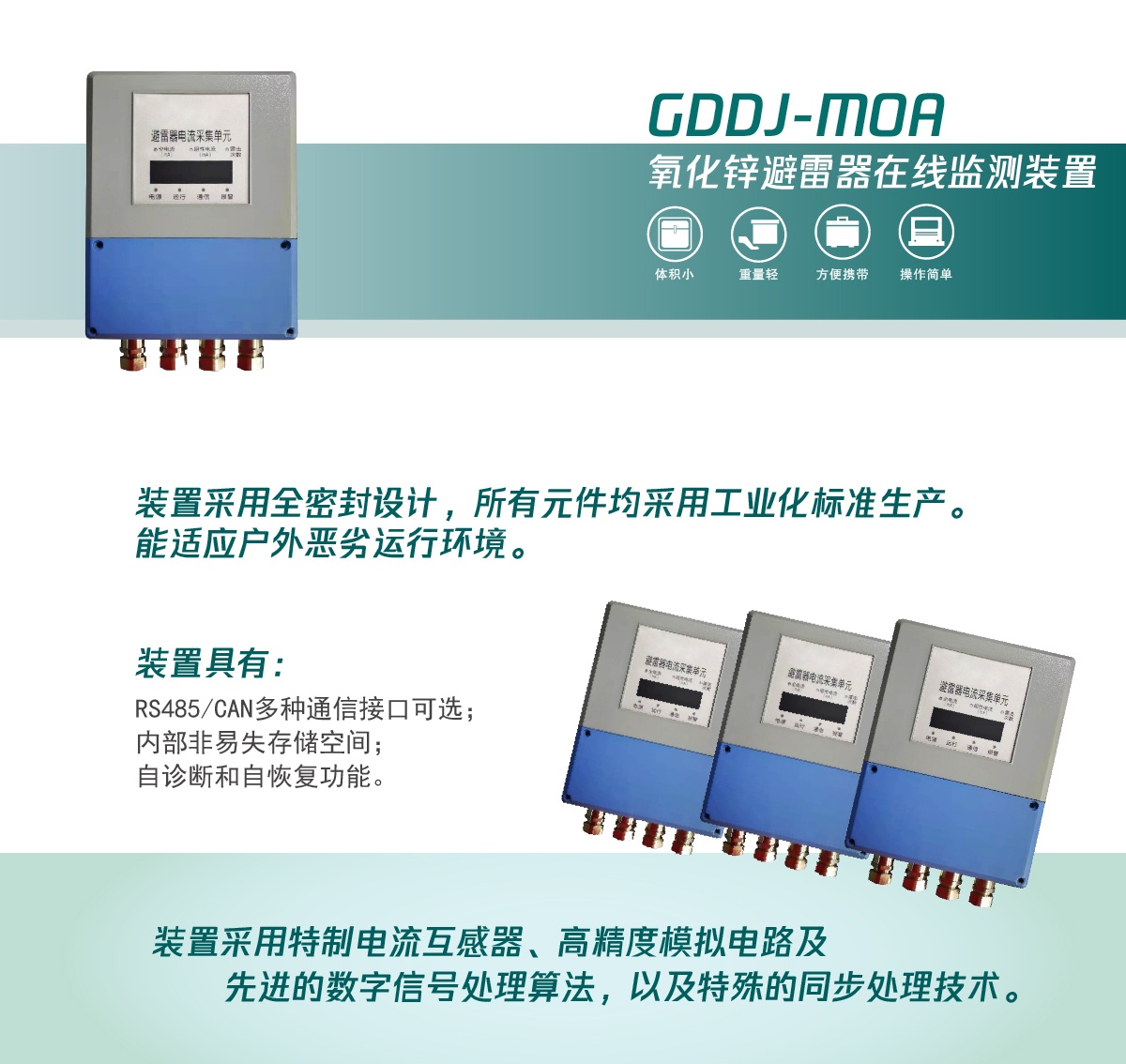 ·裝置采用全密封設計,具備防腐、防風、防塵、防電磁干擾等功能,能適應戶外惡劣運行環境。